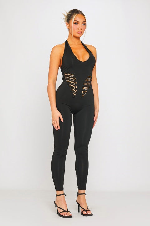 Deze prachtige jumpsuit heeft een halternek en een diep uitgesneden detail, wat een vleugje elegantie en allure toevoegt. Gemaakt van hoogwaardige stof, vormt het zich naar uw lichaam voor een flatterende pasvorm.