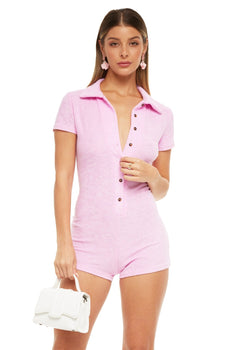 Onze Harlow Button-up Romper is een romper met korte mouwen en een retro-stijl. Deze exclusieve romper is gemaakt van een lichtgewicht en rekbare stof om het hele seizoen comfortabel te dragen. Met een lichaamsvormend ontwerp dat uw silhouet verbetert, geeft de Harlow Romper u een gepolijste afgewerkte look!