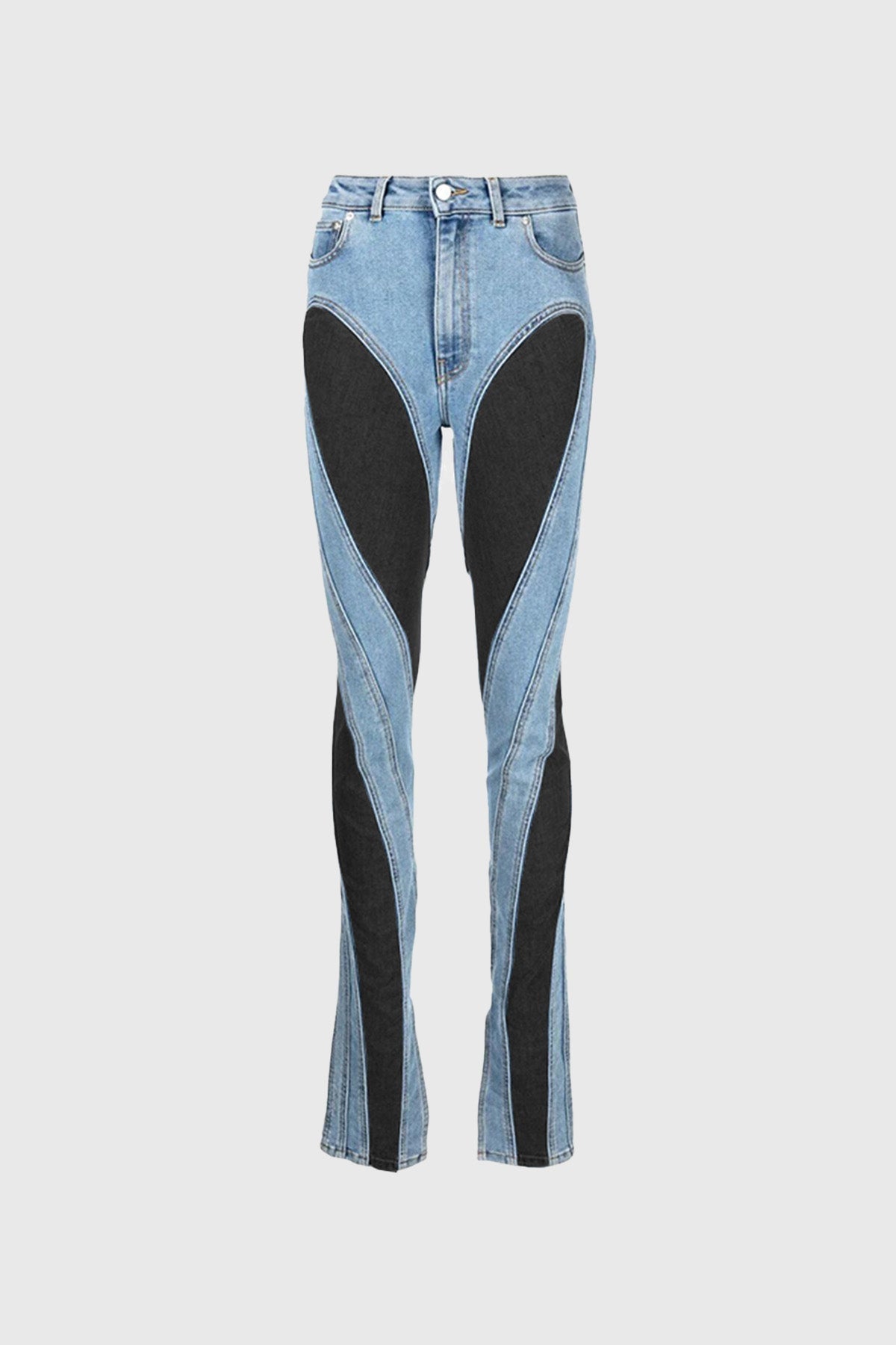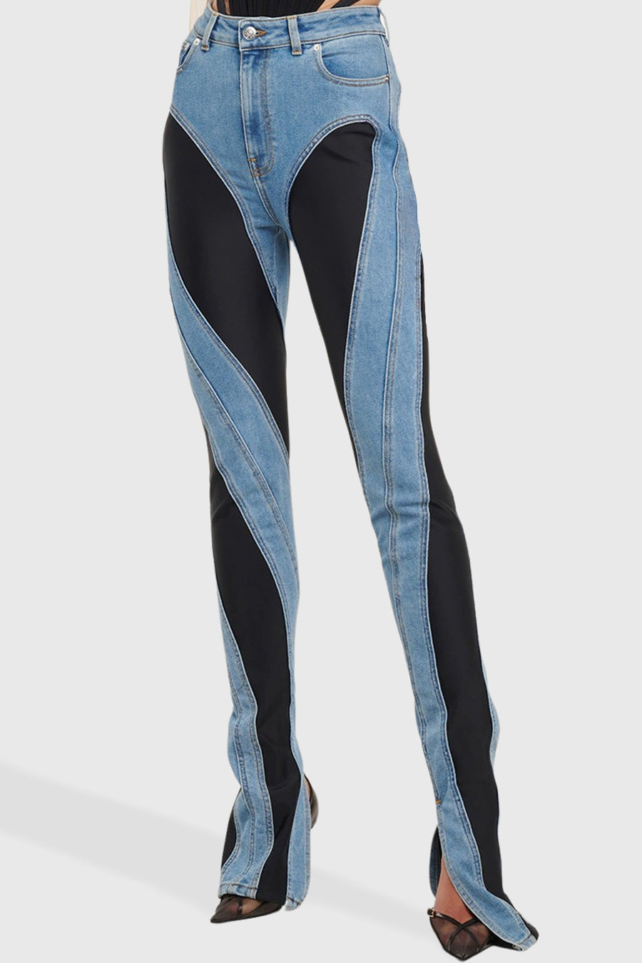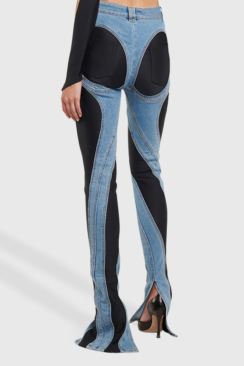 Jeans met zwarte details en gespleten zoom. De jeans heeft twee voorzakken en knoopsluiting.