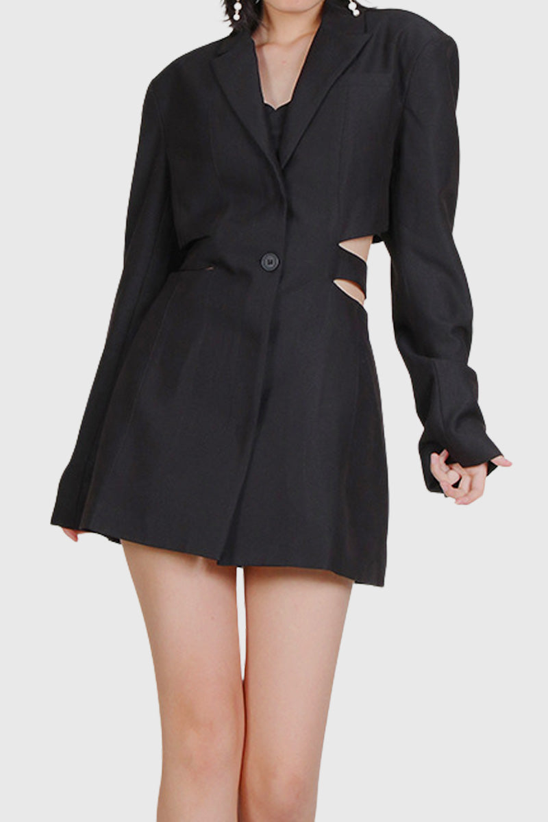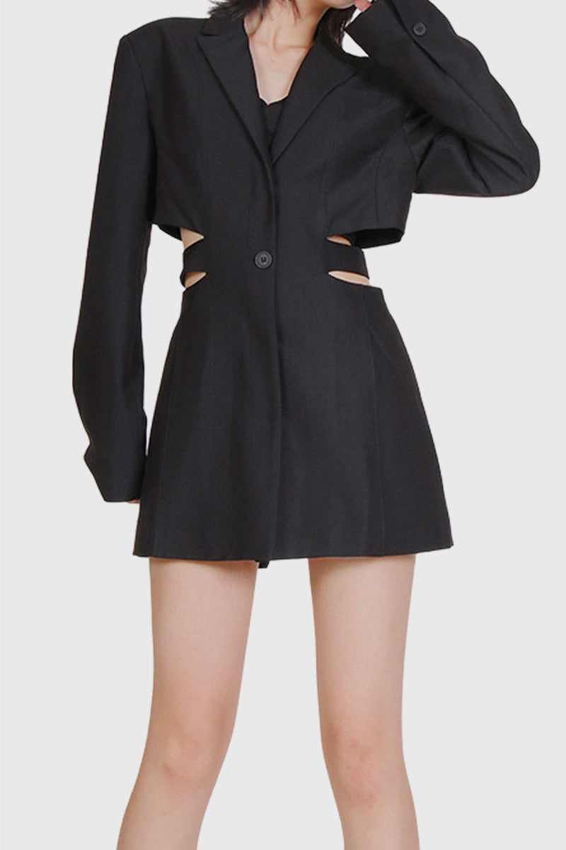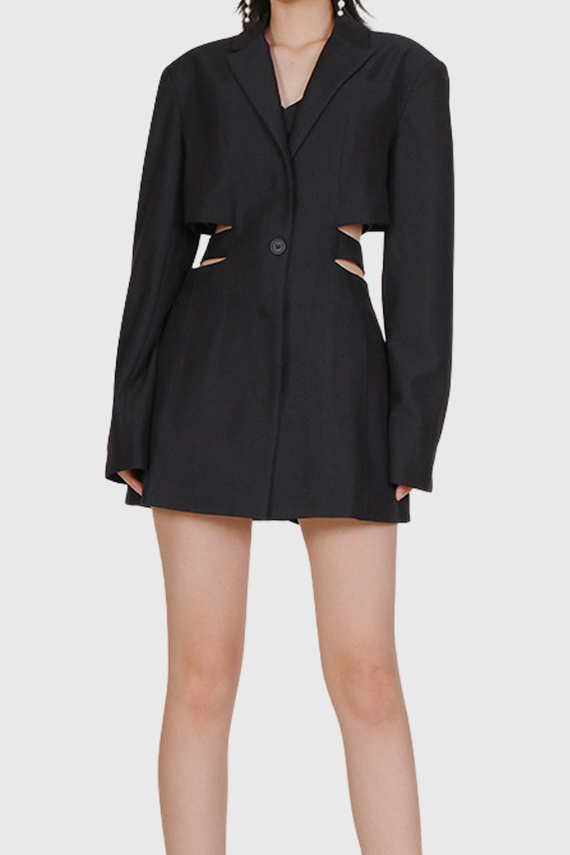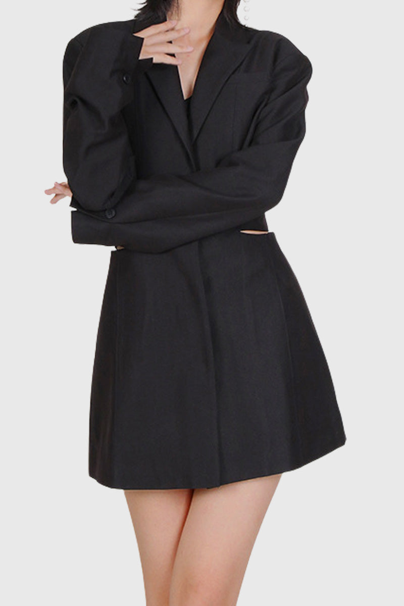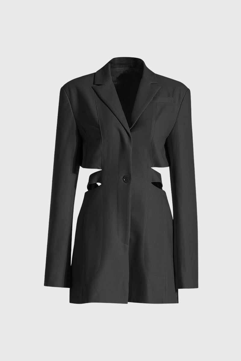 Deze blazerjurk is de perfecte mix van sophistication en sexiness, met zijn prachtig getailleerde pasvorm en gedurfde uitsnijdingen die precies de juiste hoeveelheid huid laten zien.