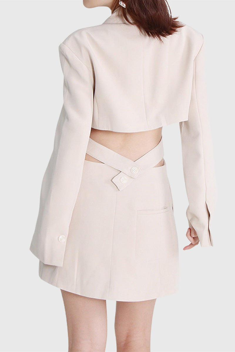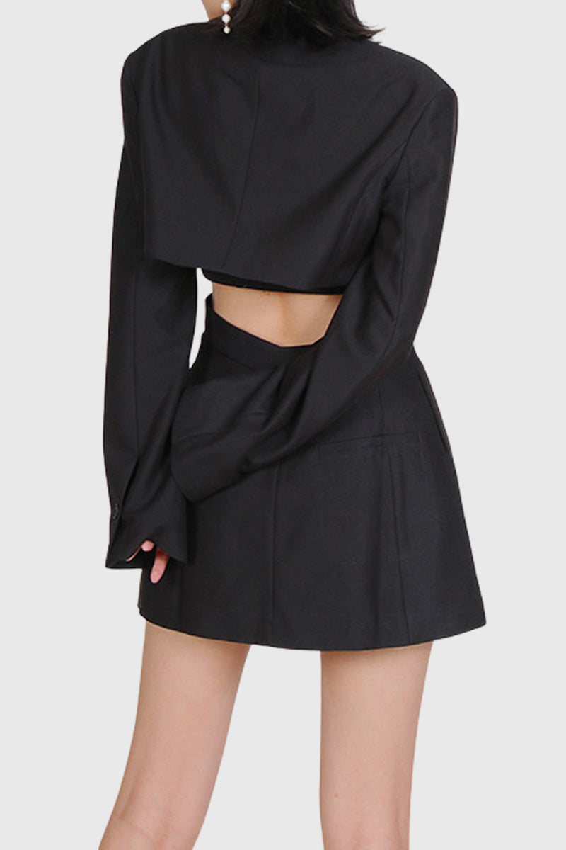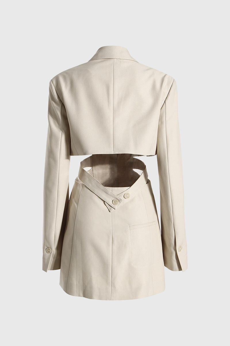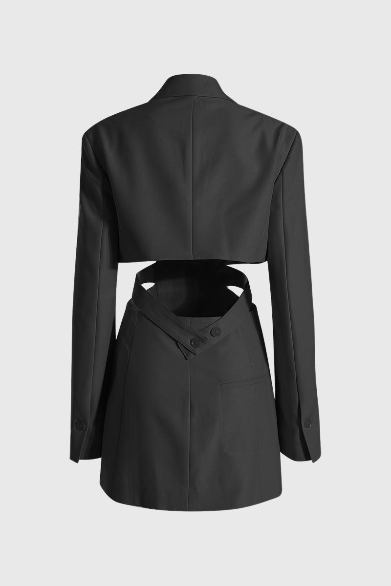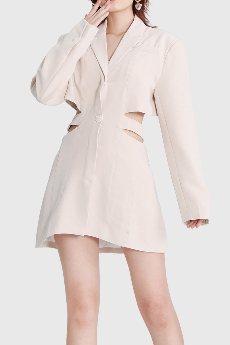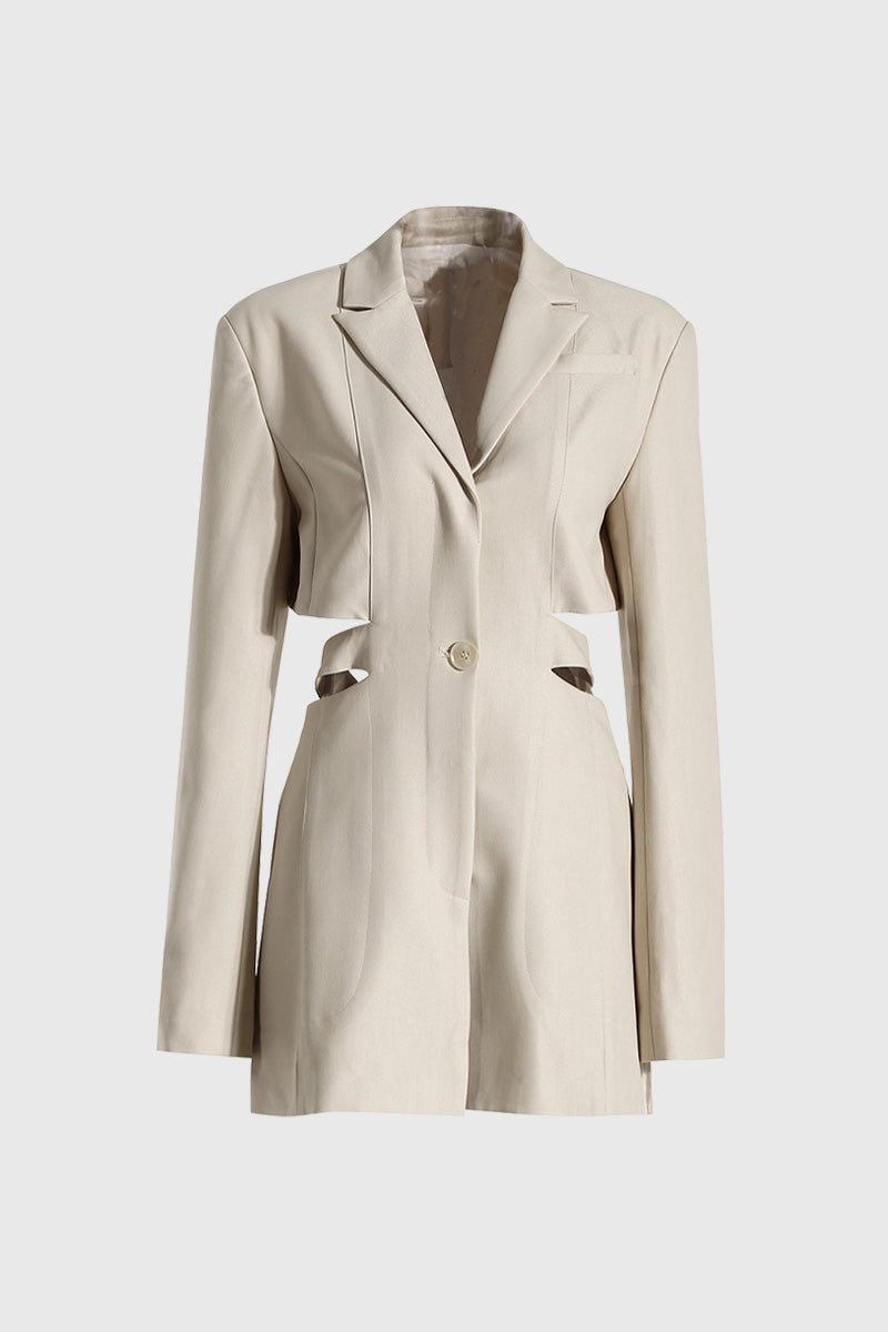 Deze blazerjurk is de perfecte mix van sophistication en sexiness, met zijn prachtig getailleerde pasvorm en gedurfde uitsnijdingen die precies de juiste hoeveelheid huid laten zien.
