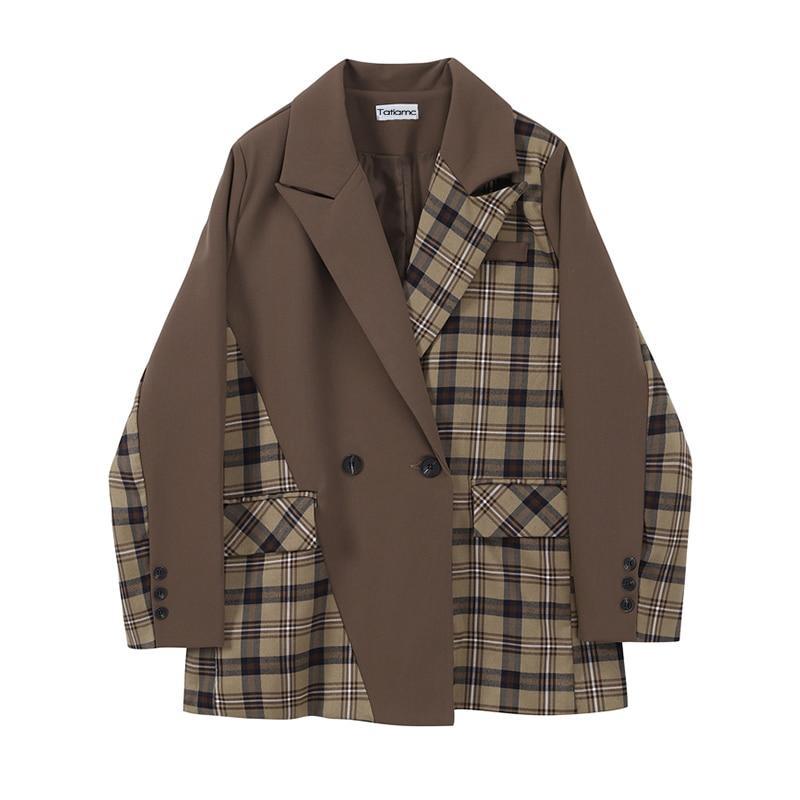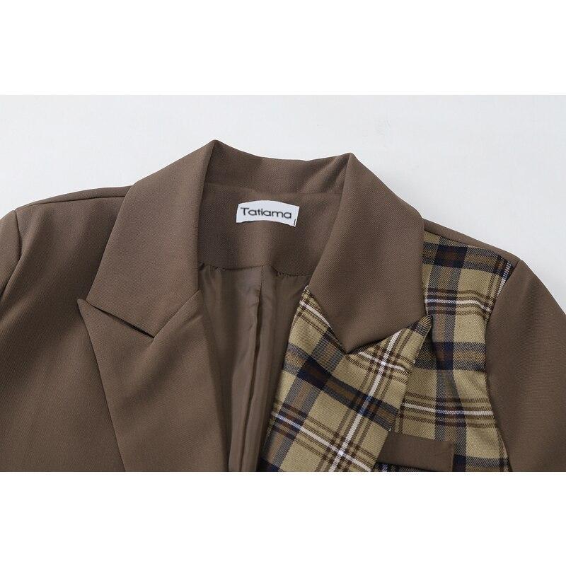 Deze oversized blazer is gemaakt van een combinatie van polyester en katoen en is versierd met onregelmatige patchwork-details, een kraag en lange mouwen met knoopmanchetten.