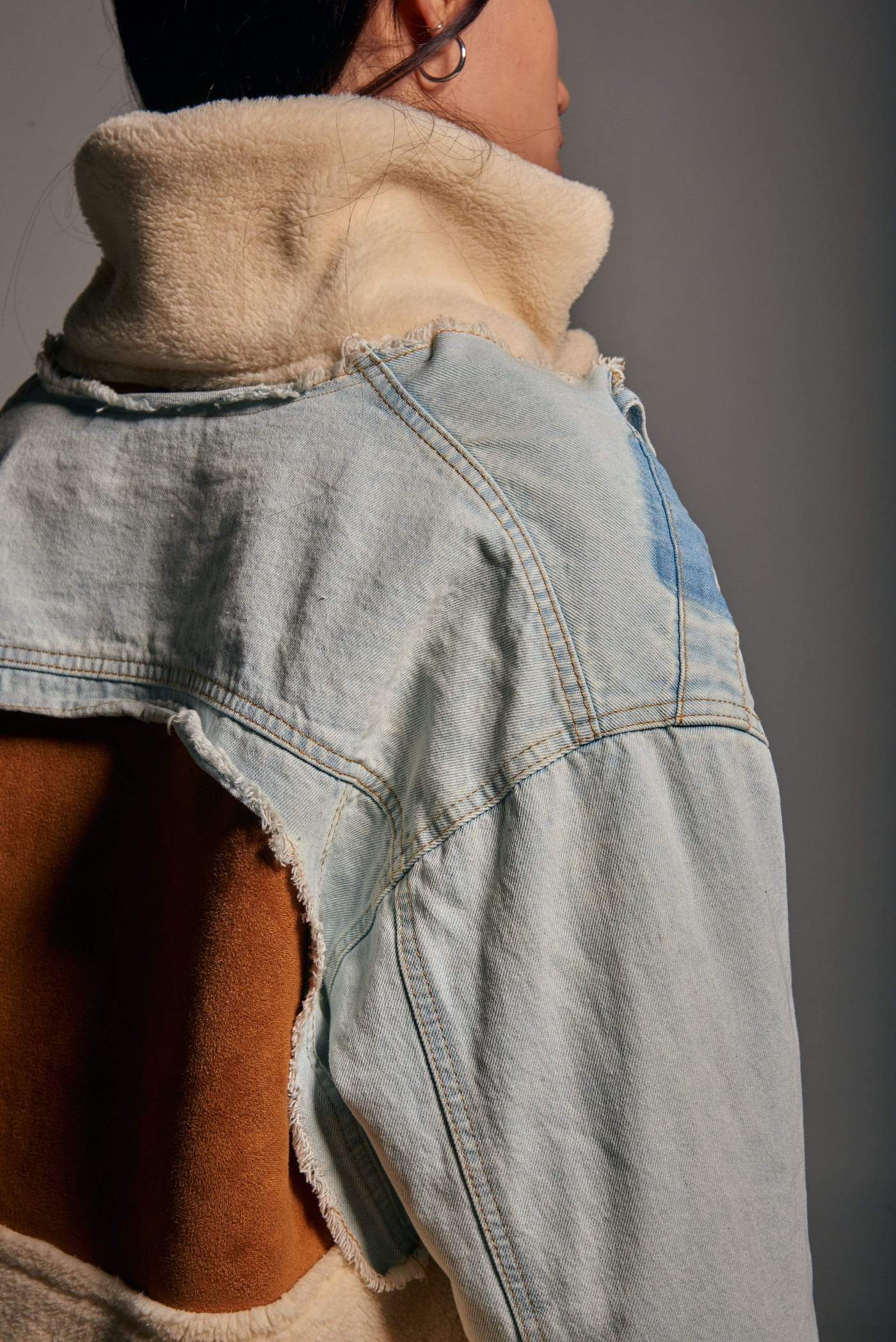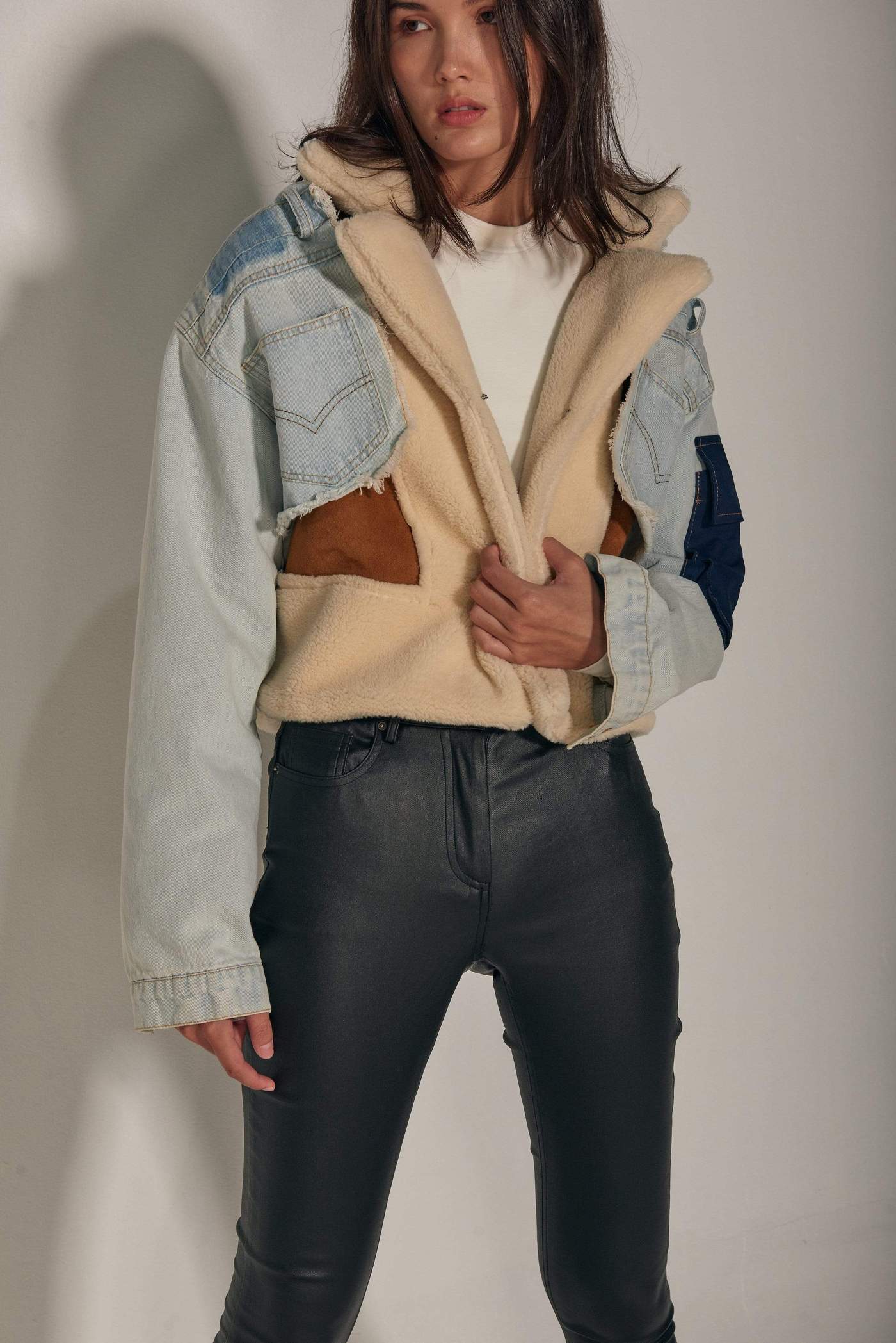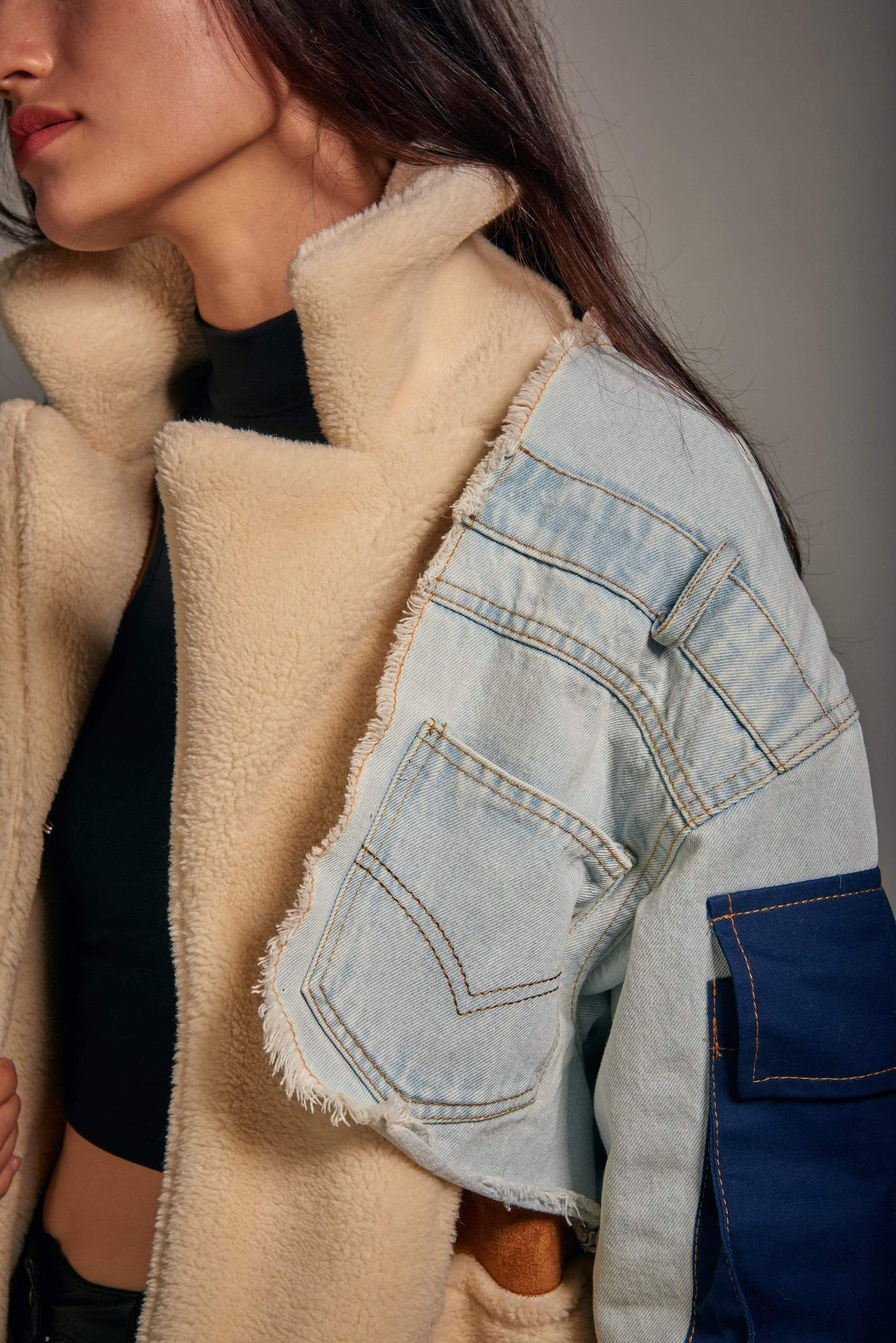 Verwen jezelf met de gezellige Monverdi Luz jas! Deze unieke losse jas is gemaakt van warm vegan sherpa en vegan suede. De jas heeft een dubbele laag, een kraag en een bijgesneden bovendeel.