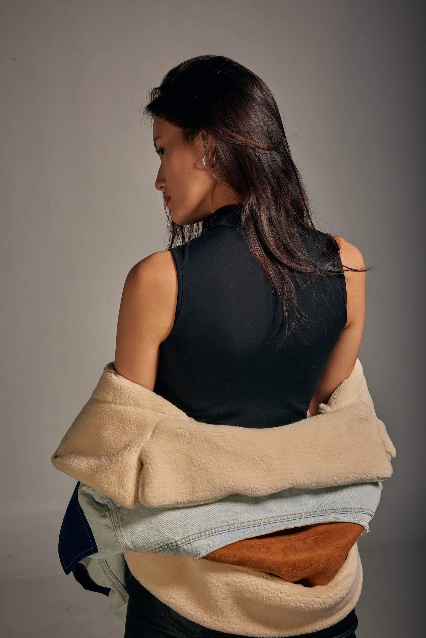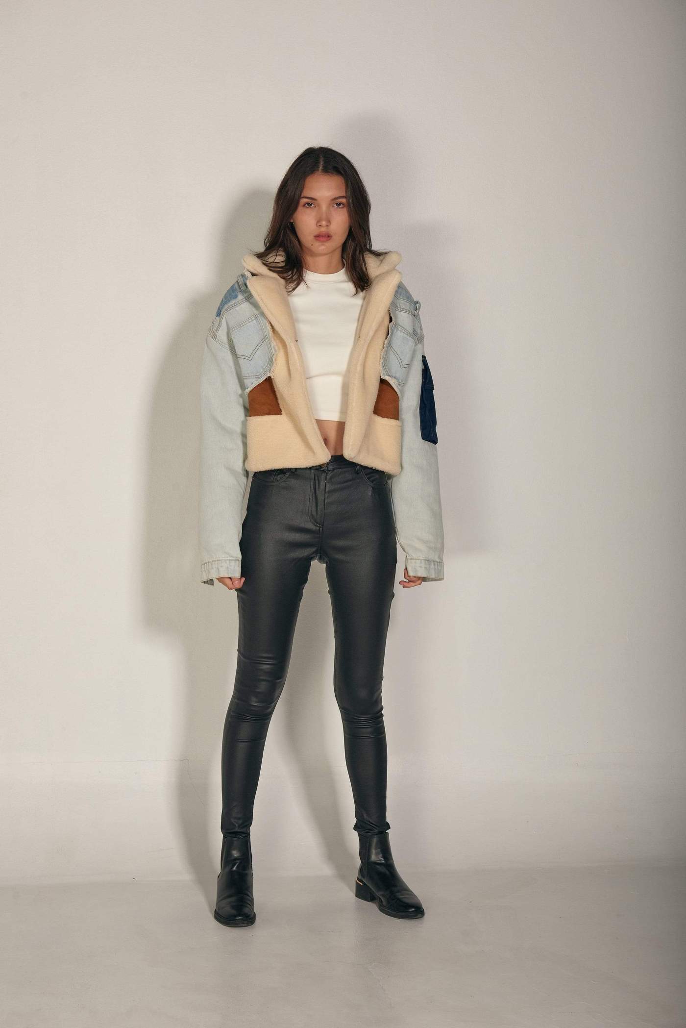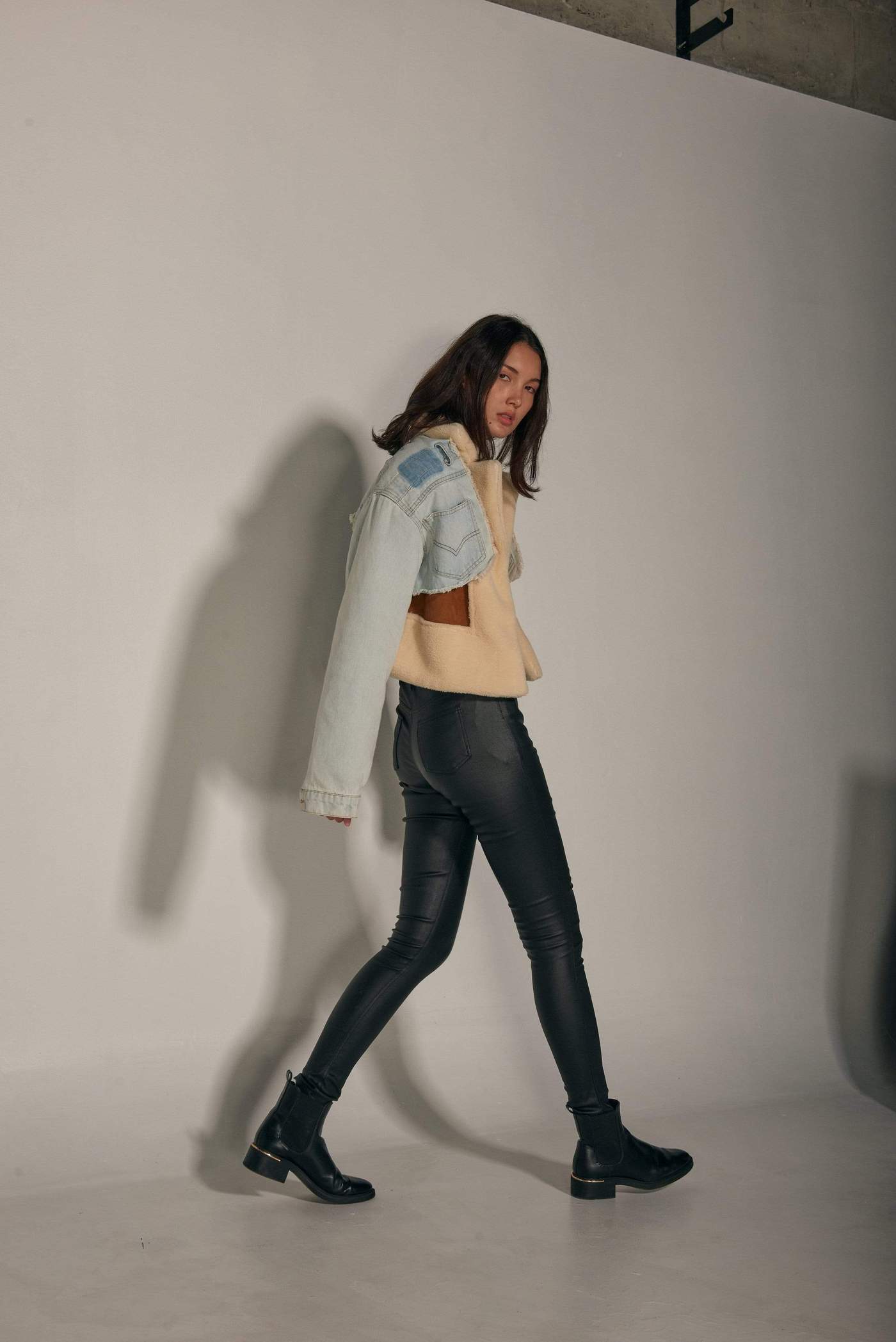 Verwen jezelf met de gezellige Monverdi Luz jas! Deze unieke losse jas is gemaakt van warm vegan sherpa en vegan suede. De jas heeft een dubbele laag, een kraag en een bijgesneden bovendeel.