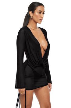 Maak je klaar om er glamoureus uit te zien in onze exclusieve Fiji Backless Mini Dress. Met een ongelooflijk zachte en ademende stof en een dramatisch backless design aan de achterkant en een royale plunging halslijn aan de voorkant, zullen alle ogen op jou gericht zijn. Deze mini jurk heeft ook lange mouwen om je een beetje bedekt te houden op koudere avonden.