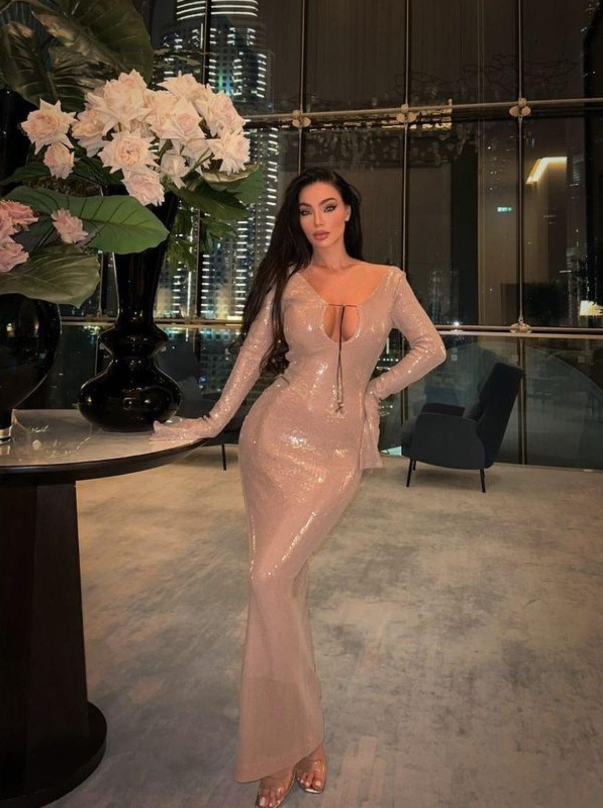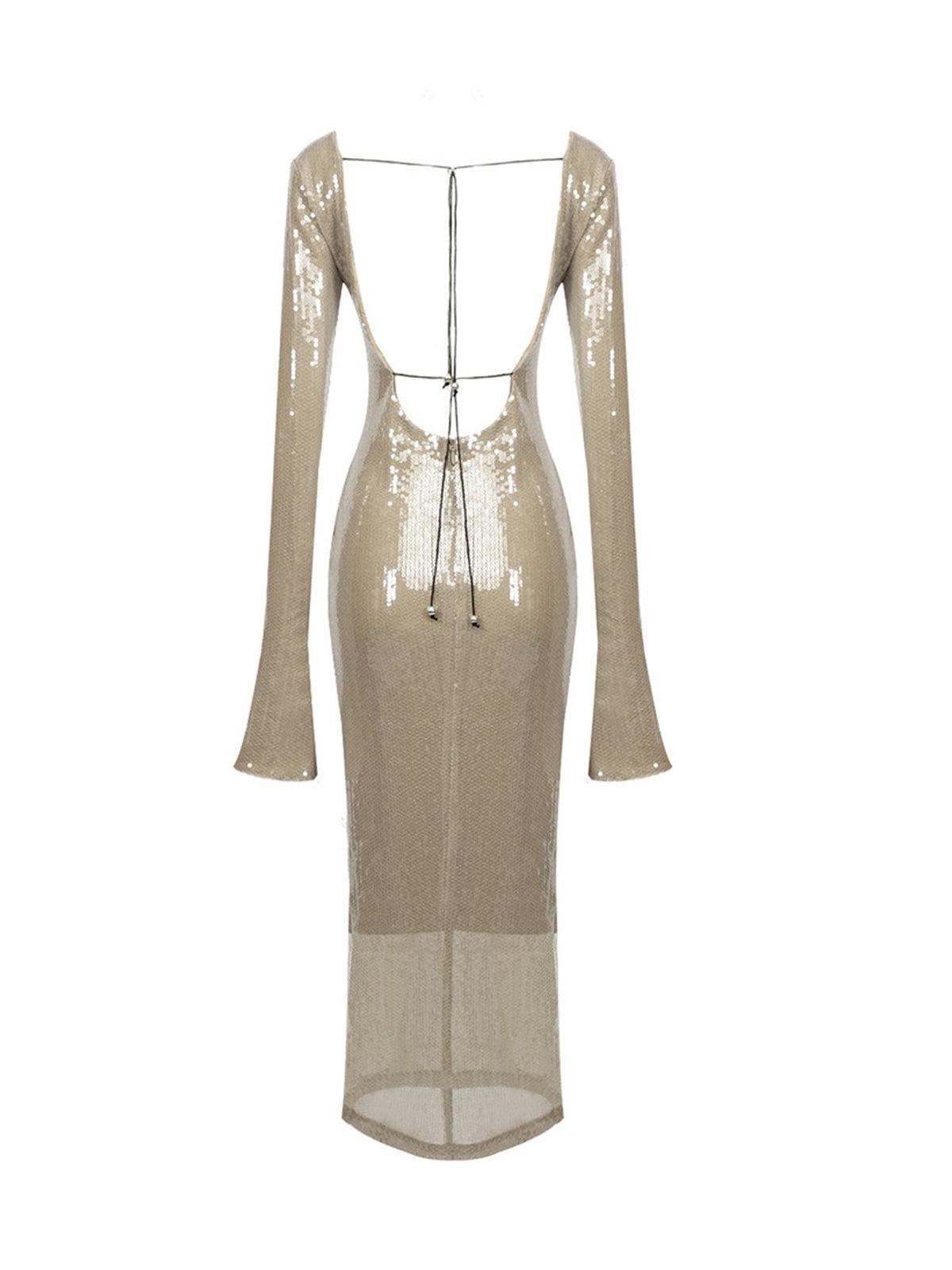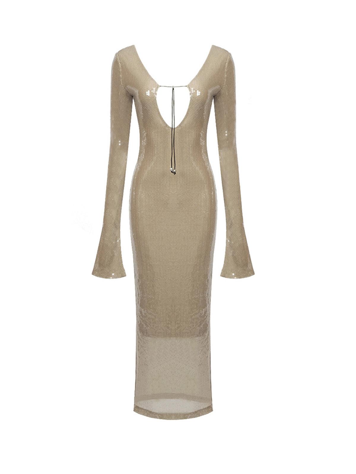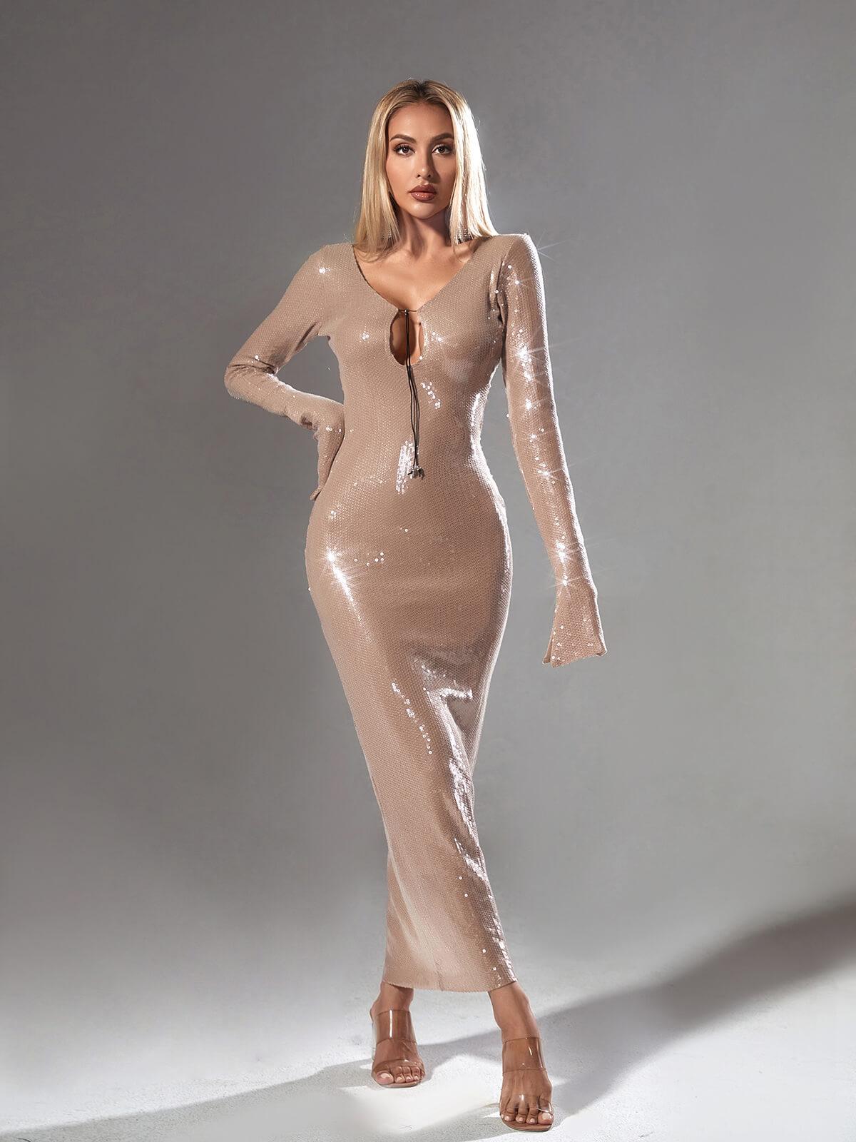 SIAN SEQUIN RUGLOZE MAXI JURK - NUDE