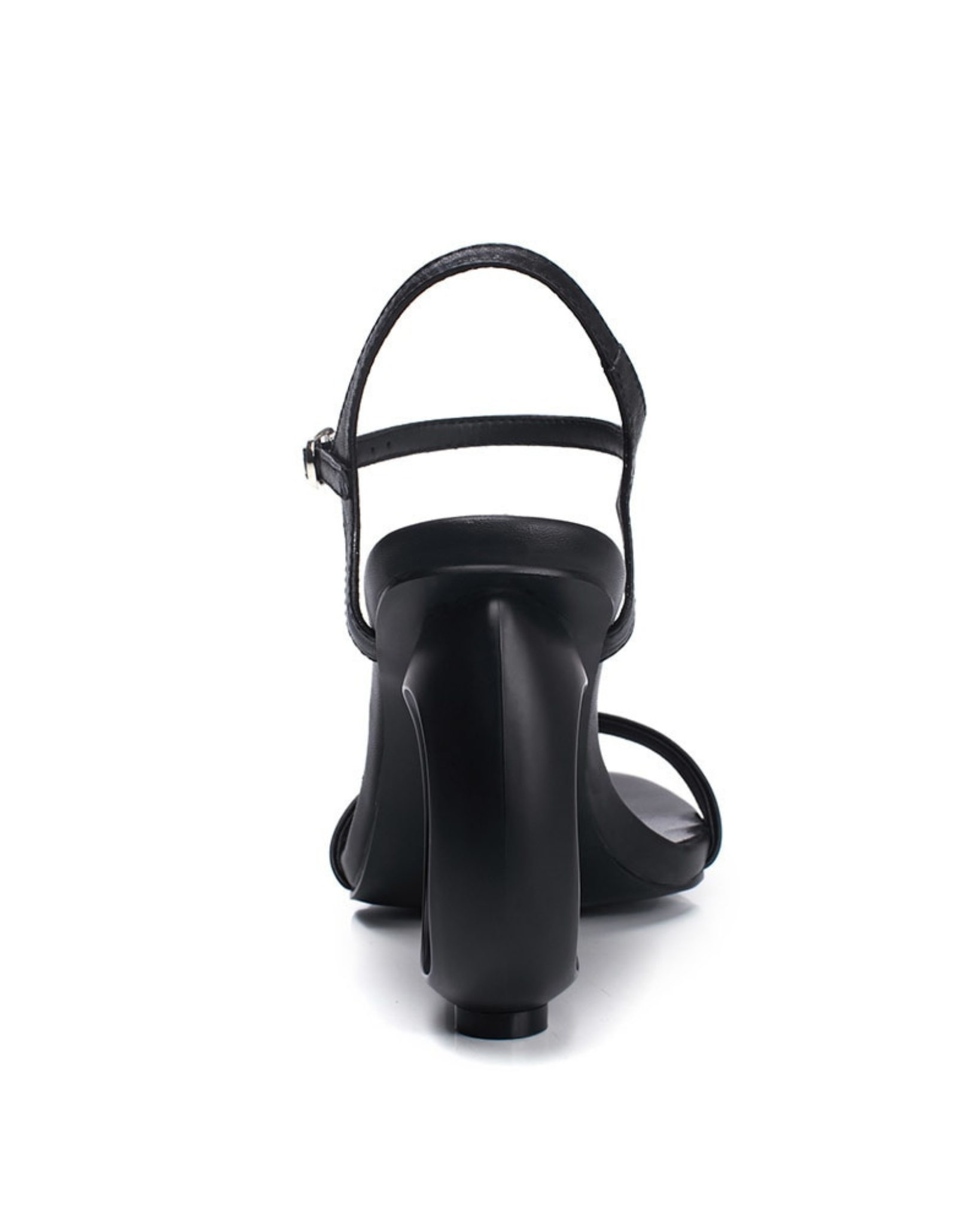 Deze hoge open sandalen met hak hebben een uniek ontwerp op de hak, waardoor ze een modieuze en opvallende toevoeging zijn aan elke garderobe. Het open ontwerp zorgt voor ademend vermogen en een licht gevoel, terwijl de hoge hak zorgt voor extra hoogte en een vleugje elegantie. Voel je geweldig en zelfverzekerd terwijl je deze hakken draagt, perfect voor een avondje uit of een speciale gelegenheid