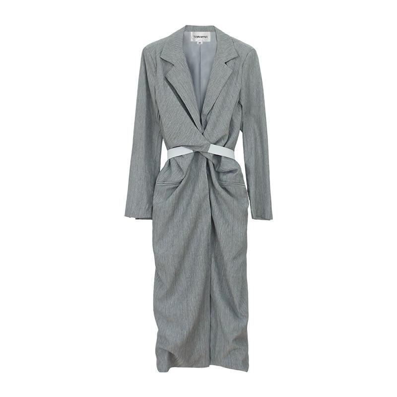 De elegante, geplooide silhouet wordt bij de taille vastgezet met een riem voordat het uitloopt in een midi-lengte. Dit is een must-have voor elke garderobe.