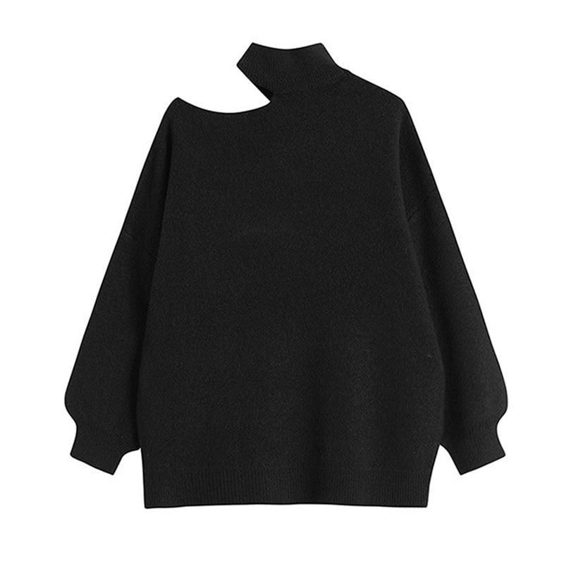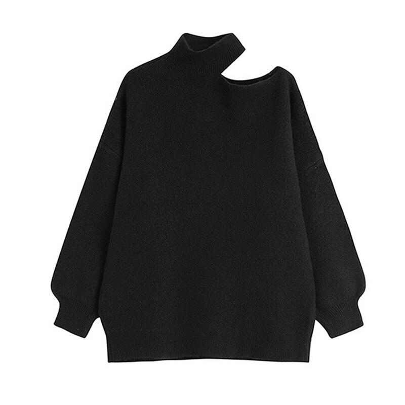 Een katoenblend stof vormt deze oversized sweater met een hoge kraag, off-shoulder stijl en lange mouwen met verlaagde schouders.