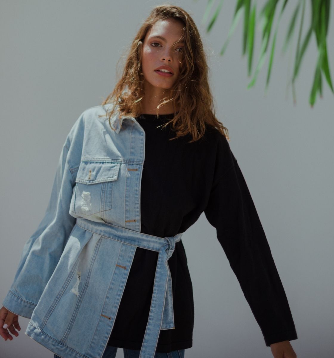 De Monverdi Gabriela is een Blazer Top, handgemaakt van een mix van polyester en katoen. De top heeft lange mouwen en is uitgevoerd in een transparante zwarte kleur. Hij wordt geleverd met een oversized denim jack, dat ook een afneembare tailleband heeft om naar eigen wens te stylen. Dit item is een must-have voor elke garderobe en laat je er fantastisch uitzien en voelen!