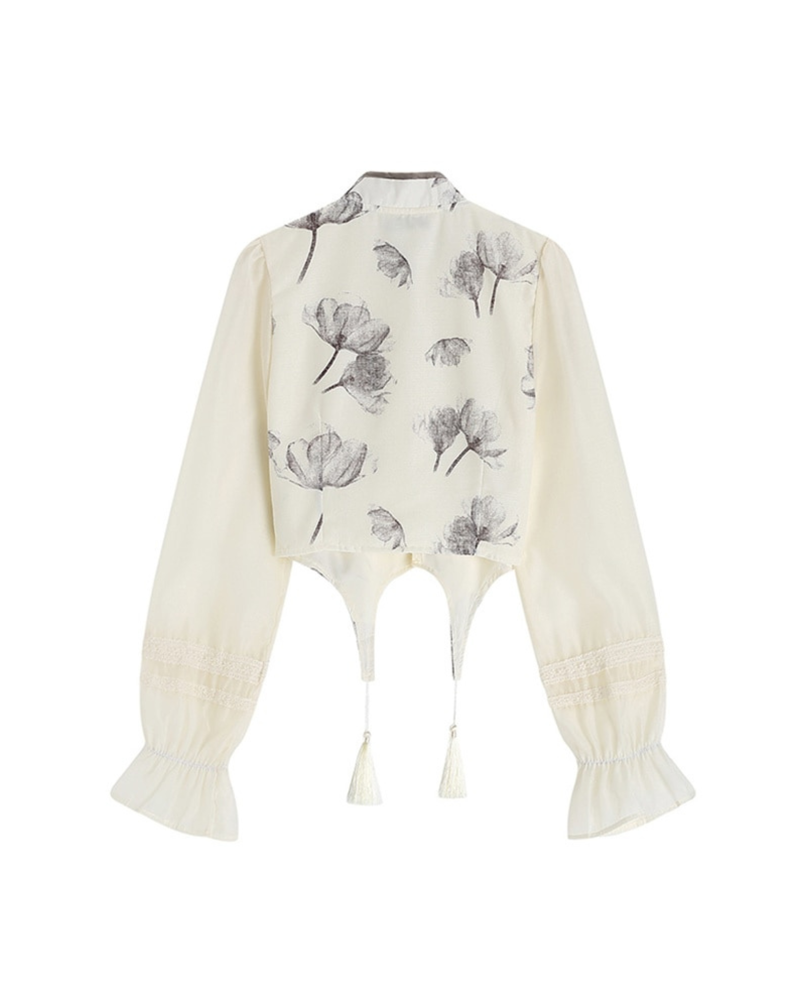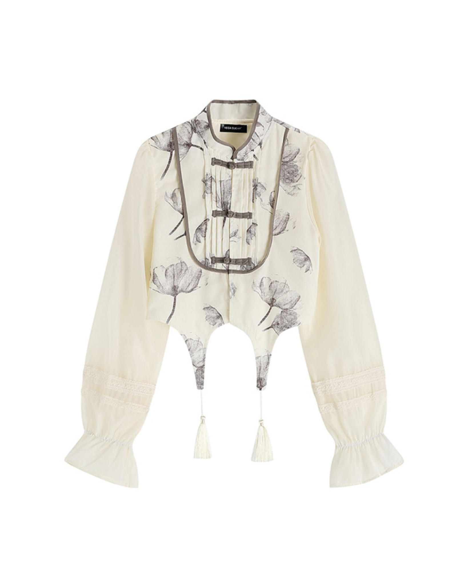 Twee hangende details aan de voorkant van het shirt creëren een speels en leuk element, wat bijdraagt aan de algehele charme van het kledingstuk. Voel je goed en zelfverzekerd in dit unieke en prachtige shirt dat niet mag ontbreken in je garderobe!