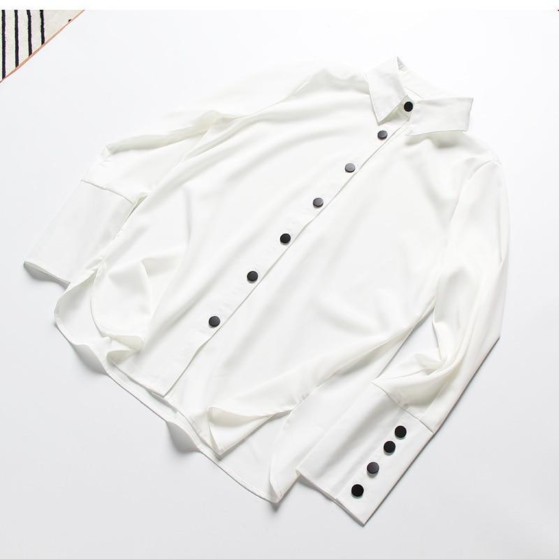 Met een vintage uitstraling is de blouse voorzien van een knoopsluiting aan de voorkant en een omgeslagen kraag. De losse lange mouwen maken de look compleet