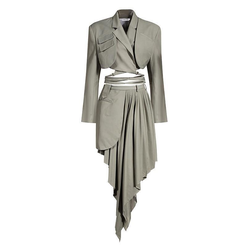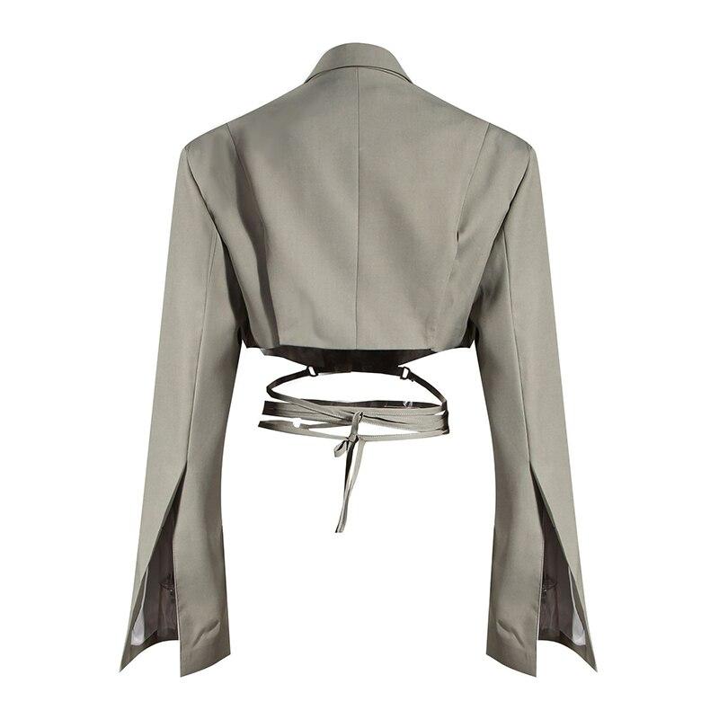Deze losse blazer van een katoenblend heeft een kraag, inkepingen in de revers, dubbele zakken en gestructureerde schouders. Een ingesneden achterkant en de twee zilveren ringen bij de afgeknipte zoom ondersteunen lange en dunne banden die om de taille wikkelen voor een gevlochten look!