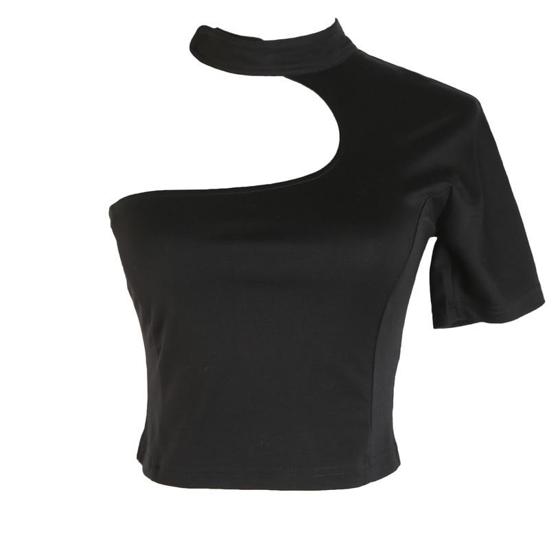 De split op de schouder geeft dit eenvoudige T-shirt een coole asymmetrische uitstraling!
