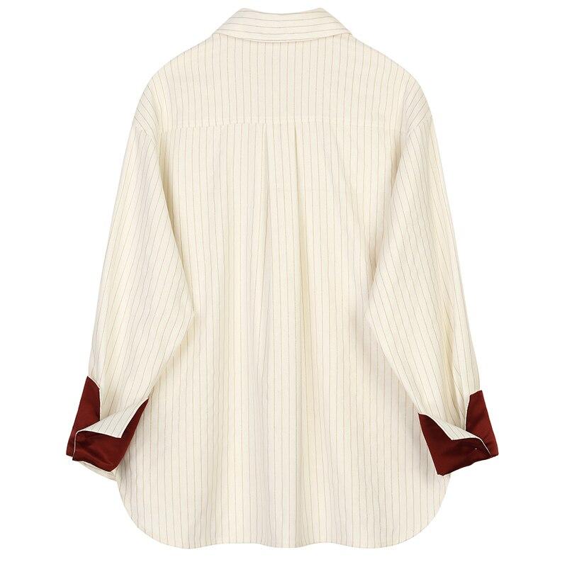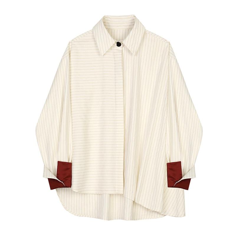 Deze off-white top met krijtstreep is een absolute must-have voor elke garderobe. Het heeft een knoopsluiting aan de voorkant en een spread kraag, evenals een katoenmix samenstelling voor extra comfort. De enkelvoudige manchetten met rode details voegen een vleugje kleur toe aan deze klassieke top.